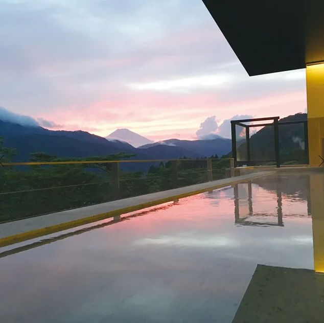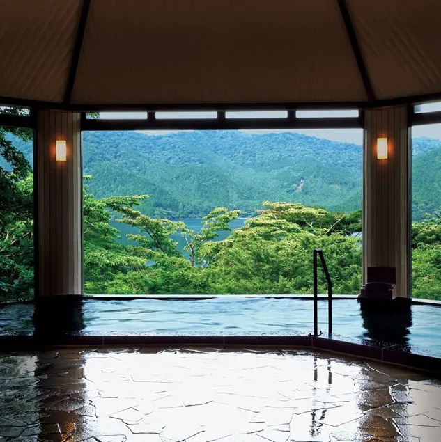 有形文化財にも指定された建物で、芦ノ湖の景色と富士山を同時に眺められる開放的なロケーションが魅力とされている。