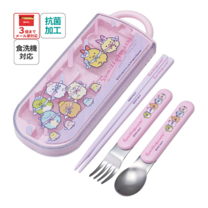 子供用 抗菌 お弁当 トリオセット 開けやすいスライド式(箸、スプーン、フォークのセット) すみっコぐらし えびてんアイドル