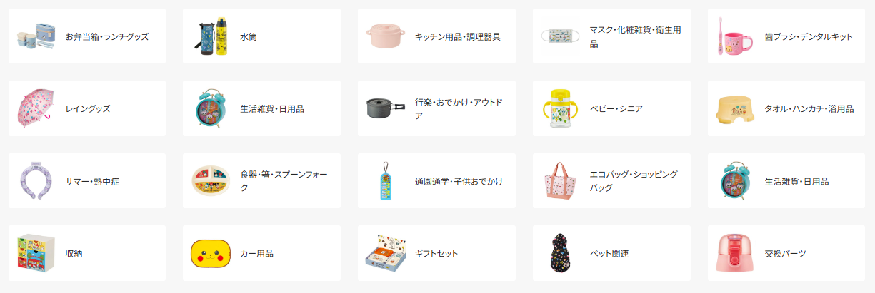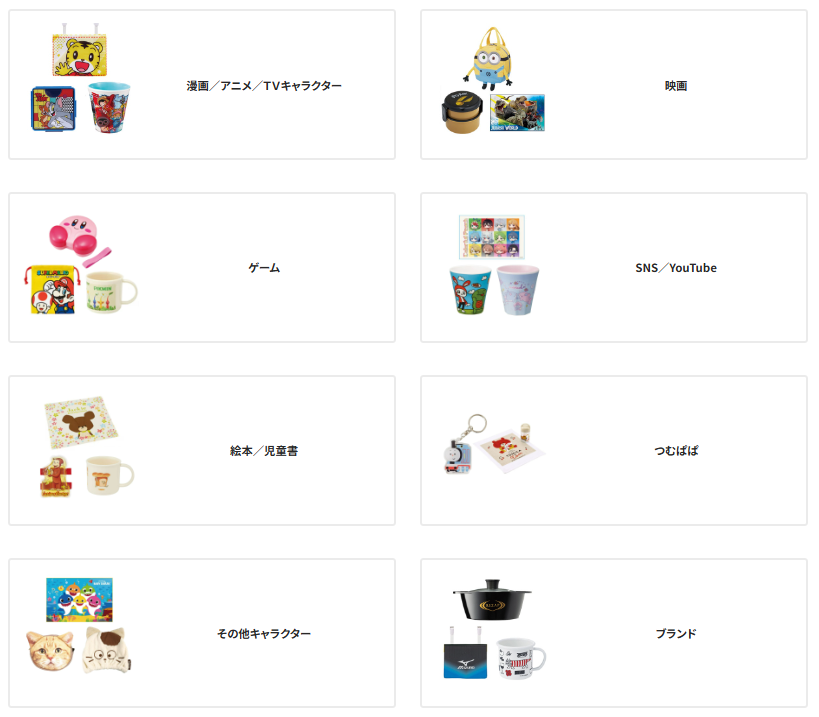 また、サンリオ、ディズニー・マーベル、スタジオジブリ、すみっコぐらし、スヌーピー、ポケモン、マインクラフトなど、多様なキャラクターグッズも豊富に取り扱っているのが特徴です。