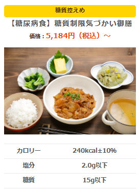 1食の糖質を15g以下にして、カロリー240kcal(±10%)、塩分2.0g以下も追求した糖尿病専門医「原島伸一先生」が監修したメニューです。