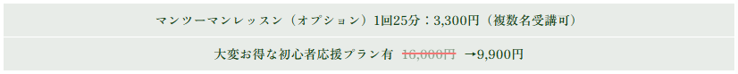 一般的なグループレッスンではなく、 個室でマンツーマンレッスンを受けられます。 (オプション)