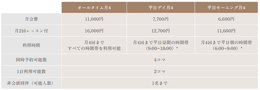 *時間制限のあるプランについては、記載の時間帯に開始するコマのみお使いいただけます