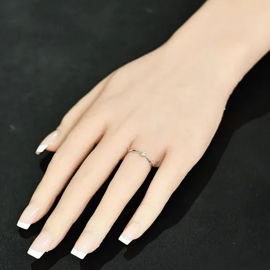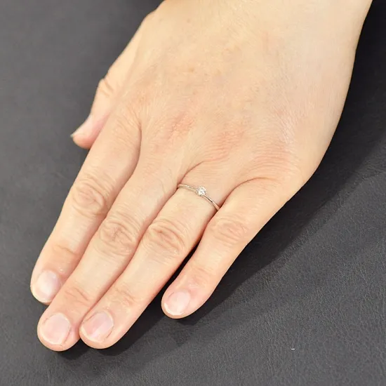 婚約指輪として定番の一粒タイプで、シンプルだから重ね着けや普段使いまで幅広く対応できる万能デザインらしい。0.1ctの天然ダイヤを6本爪(ティファニー爪)で丁寧に留めてあり、派手すぎず職場でも使いやすいサイズ感とのこと。枠はプラチナ仕上げのシルバーで、やや色味があり輝きの良いダイヤを合わせているため、天然石ならではの質感をしっかり楽しめる仕上がり。価格を重視しつつも本物のダイヤにこだわりたい方に向けて強く推されているアイテムだそうで、期間限定でかなりお得になっている点も紹介ポイントになりそう。