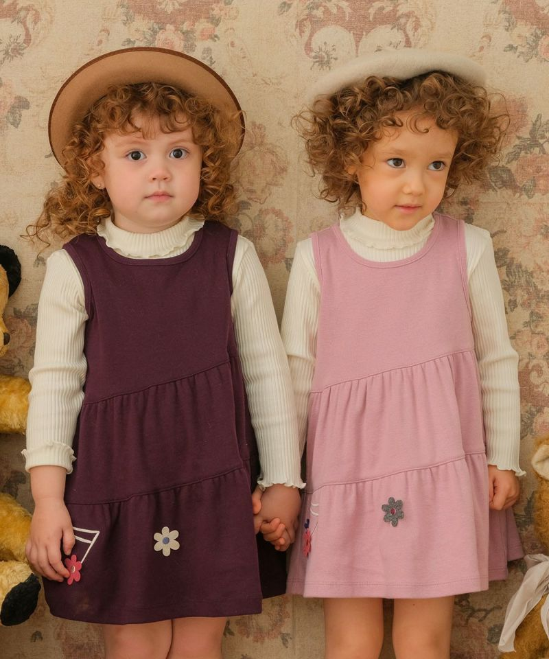 お花モチーフと音符の刺繍が目を引く、可愛らしさたっぷりのワンピース。ブランドらしい世界観はそのままに、斜め切り替えデザインを取り入れることで、ぐっと洗練された印象にアップデートされています。インナーにブラウスやリブタートルを合わせれば、きちんと感のあるお出かけスタイルが簡単に完成。普段使いはもちろん、ちょっと特別な日にも活躍してくれる一着です。