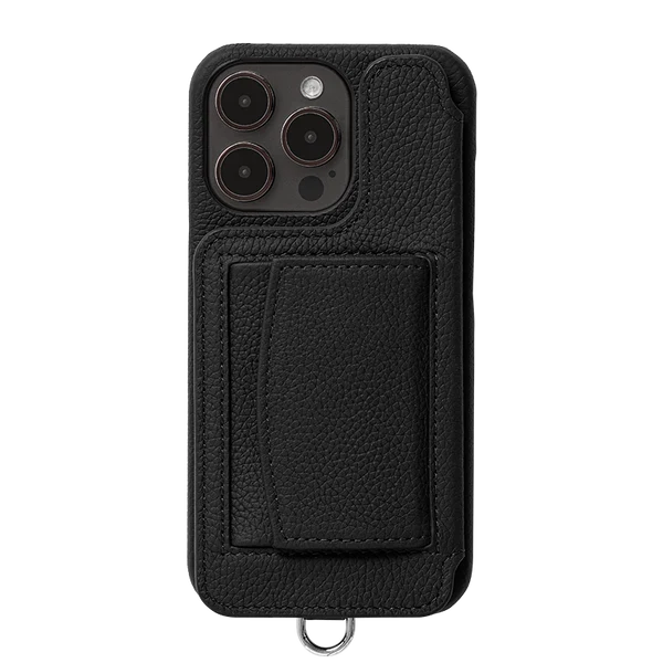 フラップを立てれば横置きスタンドとして使えるので、動画視聴やオンライン会議のときにも便利です。Dカン付きで、別売りのショルダーストラップを合わせれば持ち方や雰囲気をアレンジできるのもポイント。なお、MagSafeには対応していない仕様となっています。