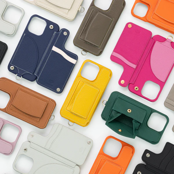 カラー展開が豊富なお財布機能付きiPhoneケースで、選ばれているのはフランス産の上質な牛革。天然皮革ならではの風合いが活きていて、同じものがひとつとしてない点も魅力です。発色の良さと革の表情が相まって、シンプルな装いでも自然と目を引く存在感があり、「人と被らないケースを持ちたい」という人には特に向いていると感じました。
