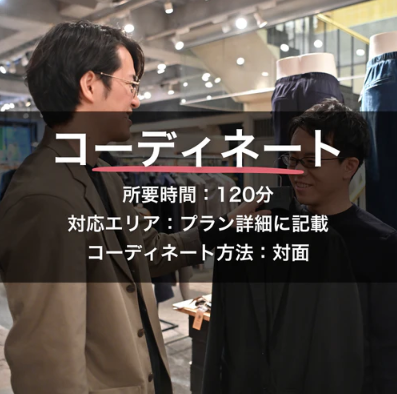 時間・対面・相談量を重視し、服装全体の完成度を高めたい人に向いた、じっくり型のコーディネートプランだと受け取れます。