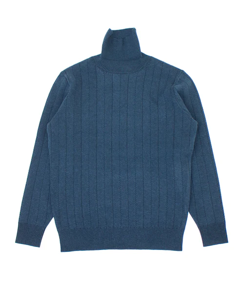 デザインは首元がきれいに収まるタートルネック。縦リブの編み地がシンプルな中に立体感を出してくれるため、一枚でも寂しく見えません。全体のシルエットもすっきりしていて、大人らしい落ち着いた印象です。