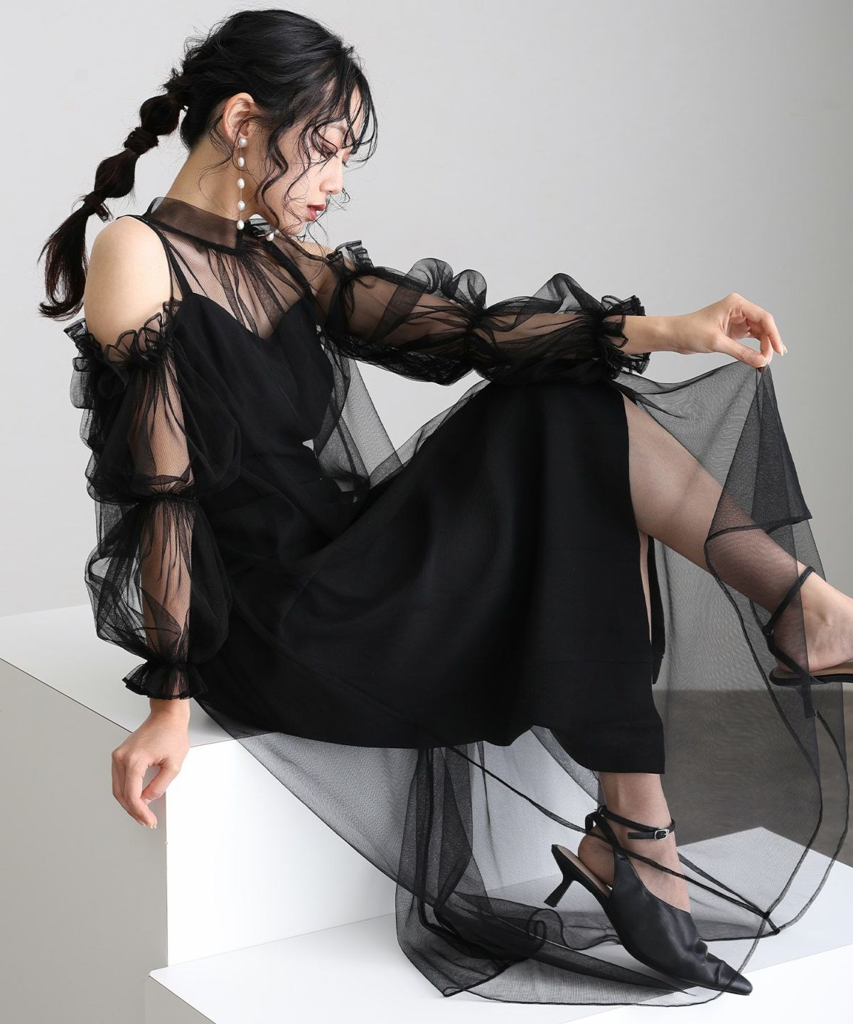 チュールオフショルダードレス